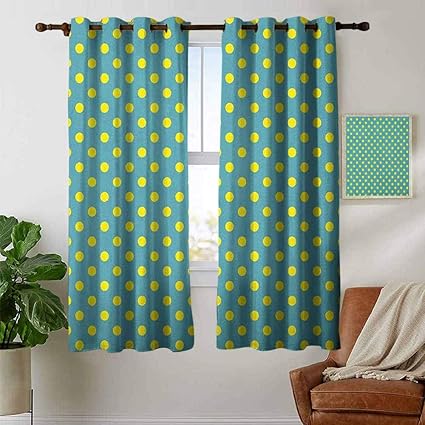 Yellow And Blue Curtains 2 Panels Set Big Vintage Polka Dots Pattern Nostalgic Stylized Spotted Pastel Design Window Drapes For Living Room Bedroom