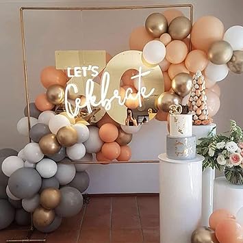 Soonlyn Latex Party Balloons 100 Pcs 12 Inch Gold White Orange Blush Gray Balloons Arch Kit Pastel Round Balloons For Wedding Party Bridal Shower