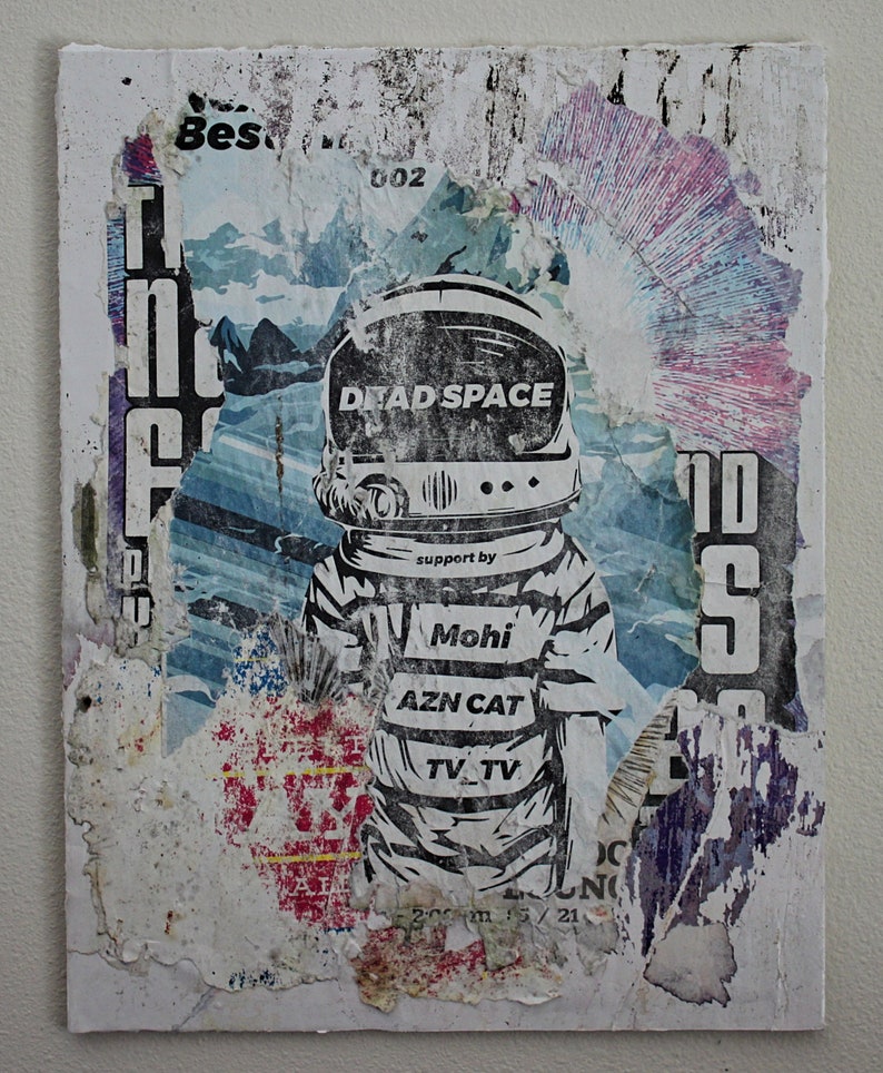 Handmade Art The Explorer Decollage Collage Torn Poster Postmodern Art Gift Idea